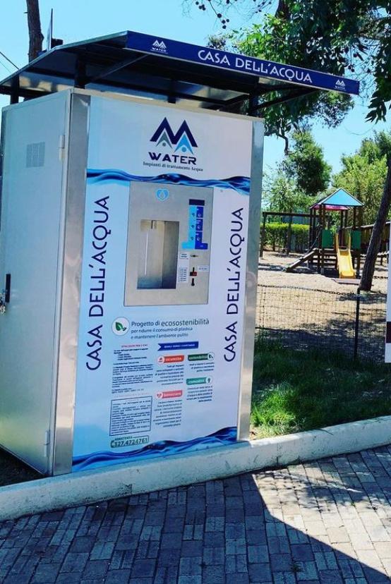 La Casa dell’Acqua di Mwater è un distributore self-service che eroga acqua naturale a temperatura ambiente, refrigerata e gasata refrigerata, fornita direttamente dalla rete idrica comunale. Grazie al sistema di microfiltrazione carbone attivo e un sistema di disinfenzione a raggi UV, offriamo un’acqua pura e pulita, priva di cloro, ozono e da altri inquinanti organici.